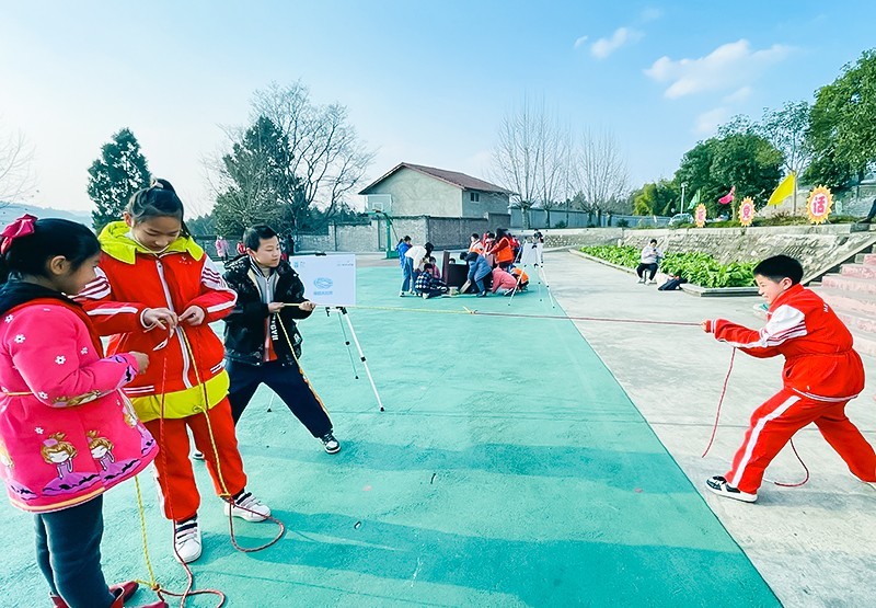 为确保活动有序开展,志愿者先是把70名学生分成5个组,每组由一位志愿者带队,分组带到5个训练区域。本次活动内容包含了“绳结大比拼”、“千斤顶救援”、“毛毯担架”,以及孩子们最好奇的“AED的使用”和“海姆立克急救法”。参训儿童在参与式、体验式的游戏中学会了巧用身边物品实施自救。