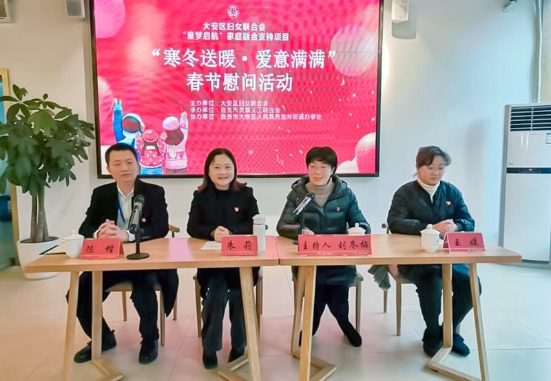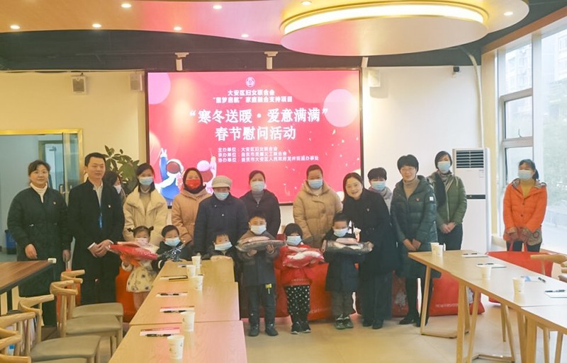佳节将至、新春新喜之时,迎风踏雪践初心,帮扶慰问暖民心。1月13日,四川省自贡市大安区委常委、组织部部长朱莉带队前往龙井街道二楼华大生活馆,出席大安区妇联“童梦启航”家庭融合支持项目“寒冬送暖·爱意满满”春节慰问活动,看望和慰问部分困难妇女和儿童,并为她们送上慰问品和新年祝福。区妇联主席刘冬梅主持此次活动,大安区龙井街道党工委书记陈楷、龙井街道办事处主任王媛,以及区妇联和龙井街道的相关负责同志和龙井街辖区的居民代表参加此次活动。