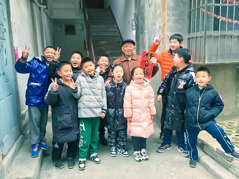 活动的最后环节是敬老人献爱心。孩子们兵分几路,将书写好的春联给辖区内的30余名老人们送去。一幅幅大红的春联,一份份深情的祝福和美好的艺术享受,赠送到了老人的手中。收到春联的老人个个喜笑颜开,不住的夸赞孩子。