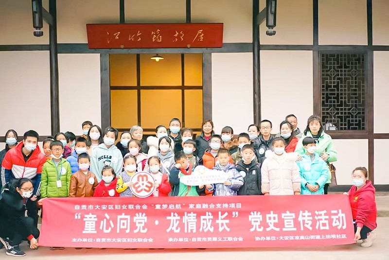“为什么战旗美如画,英雄的鲜血染红了它;为什么大地春常在,英雄的生命开鲜花”。为了弘扬优良传统,传承红色基因,引领广大家庭听党话跟党走。1月20日,由四川省自贡市大安区妇女联合会主办,自贡市灵犀义工联合会承办,大安区凉高山上田坝社区协办的大安区妇联“童梦启航”家庭融合支持项目“童心向党·龙情成长”党史宣传活动在江姐故里开展。活动共有妇女儿童40余人参与。