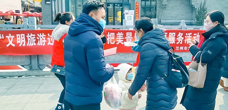 (中国众识网甘肃记者站2月10日讯:记者 王志俭文图)2月10日正月初十下午,由甘肃省兰州市文明办、兰州市文化和旅游局主办“文明旅游过新年心中自把美景留”志愿服务活动在兰州老街举行。