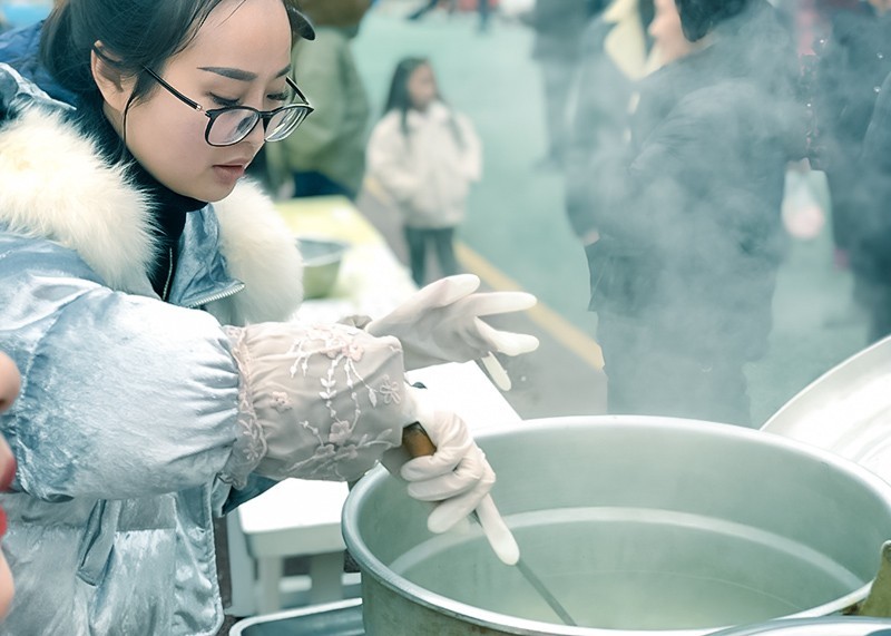 在工作人员的号召下,小区阿姨们从自己家里带来菜刀、砧板、面板、擀面杖,一到活动现场就忙活起来。这边李阿姨、王阿姨和粉、擀面,那边张阿姨、黄阿姨准备不同口味的馅料包汤圆,旁边的年轻人被现场热闹的气氛吸引了,纷纷加入其中,跟阿姨们一起包汤圆,有圆的、扁的、椭圆的、大的、小的。虽然大家做的汤圆形状不同,但是在做的过程中,相互交流,增加了彼此之间的了解,拉近了邻里亲情。一会儿工夫,就做了1000个汤圆,汤圆煮好后,你一碗,我一碗,他一碗,大家吃着自己做的汤圆,觉得无比的甜,脸上洋溢着幸福的笑容。