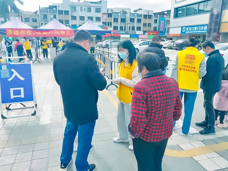 为守护群众的健康安全,2月14日,广东省惠东县爱心群志愿者协会组织志愿者协助大岭街道在爱尚百货广场开展核酸检测工作。
