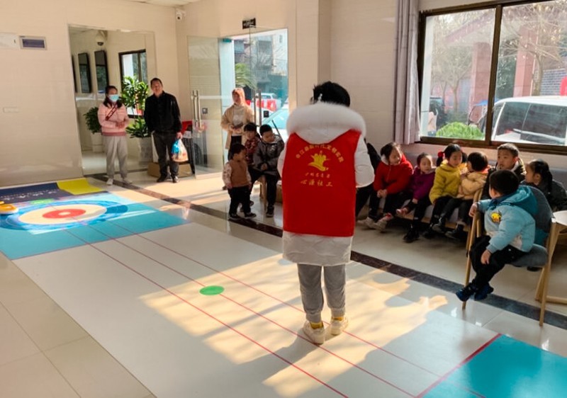 接着,社工姐姐通过现场展示冰壶、冰壶刷、播放冰壶游戏相关视频解释游戏规则,让大家更清晰地了解冰壶游戏,随后,小伙伴们分成两个队伍进行冰壶游戏PK。一个个小身影在赛道上展现着自己的风姿,大家从将冰壶推出赛道到完美推入大本营,从最初的的不会到掌握技巧,这些种种迹象,都展现出小伙伴们的聪明、团结、对运动的热情。