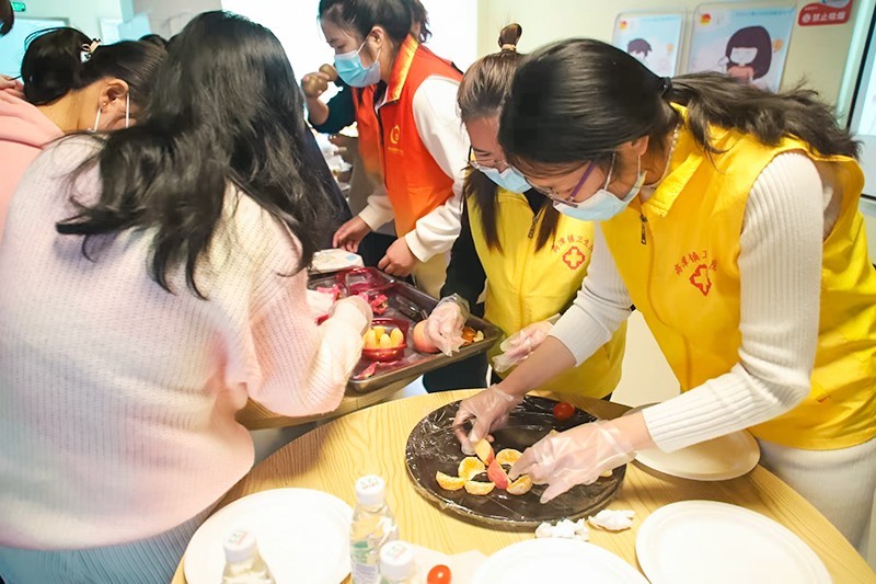 活动最后,社工把准备好的水果,通过志愿者们丰富的想象与巧妙的双手,进行水果色彩与形状的搭配。各色形状的水果经过一番心灵手巧制作后,一个个精美又有代表意义的水果拼盘顺利制作完成。大家一起拼出了“三八节”“女神”高潭革命精神等字样,面对一个个充满艺术的拼盘,志愿者们相互鼓励,相互点赞。整个培训过程气氛热烈、生动有趣,赢得了全体志愿者的阵阵掌声,最后,老师为志愿者们送上妇女节诚挚的祝福。