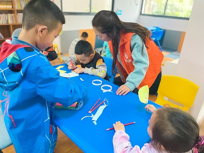 “播种希望,收获美好”的时刻到啦。在站点老师的指导下,孩子们使用彩纸、水彩笔开始制作许愿卡与名牌。大家在许愿卡上写下了自己2022年的计划,果果说他今年的计划是通过上绘画班提高画画的能力,希望自己能够得到老师的表扬。乐乐说他今年的愿望是定期来给自己的盆栽浇水,希望盆栽开满美丽的花朵。计划写下后,孩子们开始将泥土填满整个盆栽盒,并将多肉种子种在泥土中,轻轻盖上一层泥土,大家就完成盆栽的种植啦。最后,孩子们把许愿卡插在盆栽里面,站点老师提醒大家,在这个春天立下自己小小的“flag”,到秋天一定要来看看是不是完成了,大家充满期待纷纷点头答应。