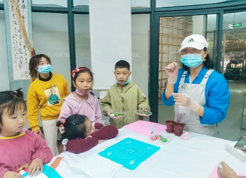 春种一粒粟,秋收万颗子。送出绿色,播撒愿望。孩子们在老师带领下,用亲手栽种的盆栽收集居民许下的2022年奋斗心愿。