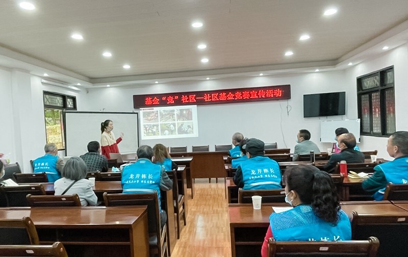 为宣传龙井街社区慈善基金,让更多社区居民认识、走近、了解社区基金,提升社区居民的慈善意识,3月24日,由四川省民政厅支持,自贡市民政局指导,自贡市慈善总会、大安区龙井街办事处主办,大安区委组织部、大安区民政局承办,自贡市社会组织社工和社区治理服务中心协办的自贡市龙井街道引导慈善力量参与基层治理试点项目在龙井街道华大社区会议室开展基金“竞”社区——社区基金竞赛宣传活动,慈善志愿者及华大社区楼栋长20余人参加。