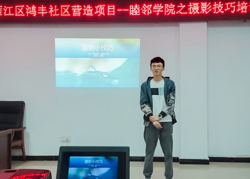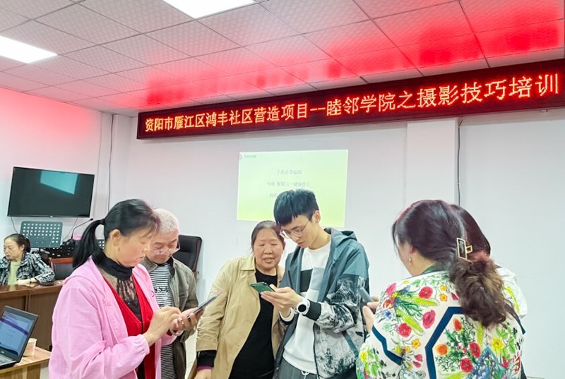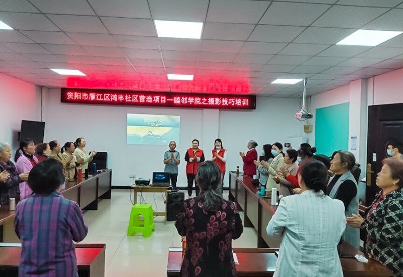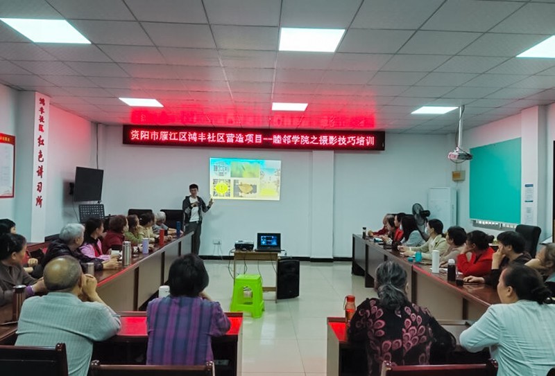 4月20日,由四川省资阳市民政局主办,资阳市心公益社会工作服务中心承办,鸿丰社区协办的“资阳市雁江区鸿丰社区营造服务采购项目——睦邻学院之摄影技巧培训”活动,在社区会议室顺利开展,23名摄影爱好者、3名社区干部、1名党员社工和4名社工参与。