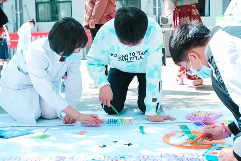 西南医科大学附属自贡医院儿童青少年心身医学中心联合四川省自贡市贡井区筱溪街道社工站和灵志社工,开展了以“童趣美好·回归蔚蓝”为主题的世界地球日游园会活动。