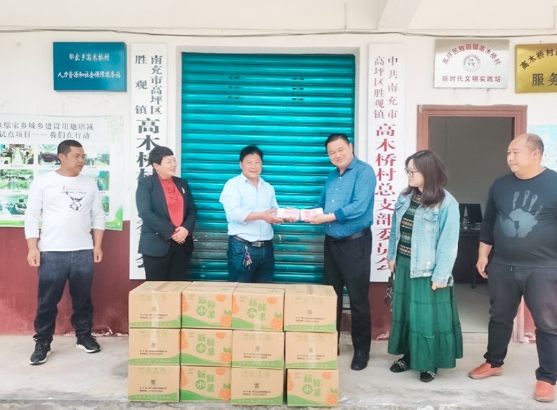 4月19日,民建南充市委副主委、华中建设集团、南充花好农业董事长张宏标为高坪区胜观镇高木桥村捐赠现金2万,捐赠橘子20件。