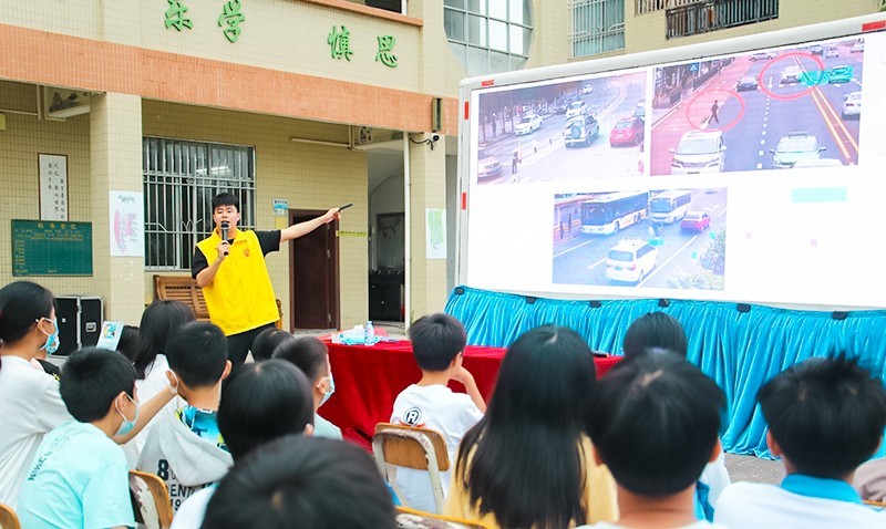 讲师根据学生群体的特点,结合典型交通事故案例,有针对性地开展交通安全知识课。课上,普及日常出行应注意的交通安全事项,着重讲解“一盔一带”的重要性,结合惠州市摩电综治十项措施内容,解读了摩托车、电动自行车交通违法存在的危害,倡导学生以小手拉大手的方式,督促家长自觉遵守摩电管理新规。