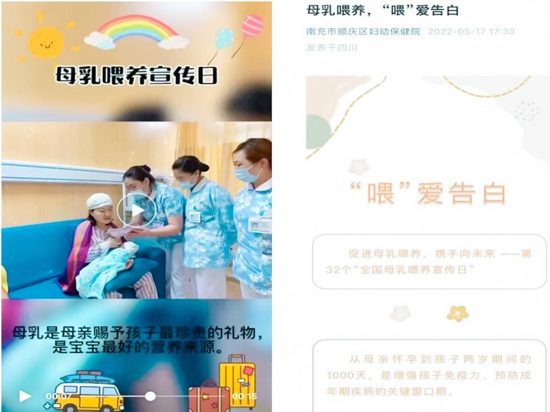 5月20日是第32个“全国母乳喂养宣传日”。母乳是母亲赐予孩子最珍贵的礼物,是宝宝最好的营养来源。为保护、促进和支持母乳喂养,携手构建支持母乳喂养的友好氛围,四川省南充市顺庆区各医疗保健机构围绕“促进母乳喂养,携手向未来”主题开展了一系列宣传活动。