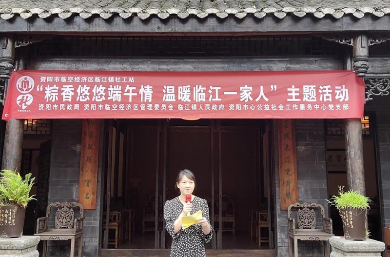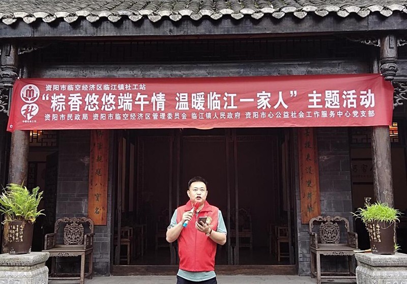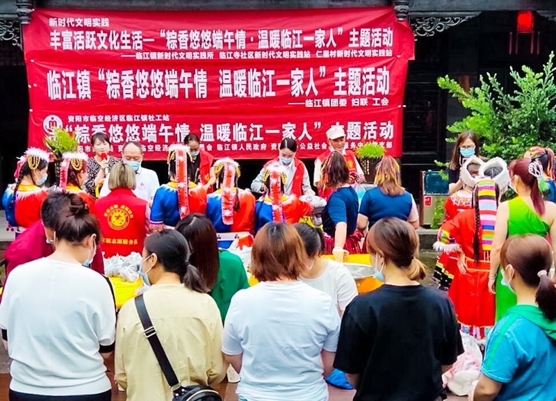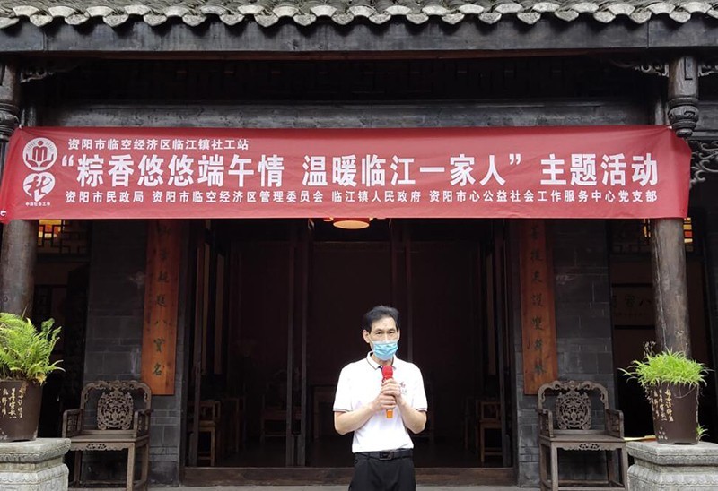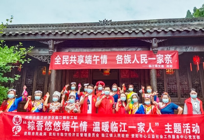 在传统端午佳节来临之际,为传承和弘扬中华民族传统文化,宣传“临江寺”牌豆瓣,同时增进临江镇居民之间的邻里感情,营造欢乐、喜庆、文明、和谐的节日氛围,让临江镇少数民族及疫情防控卡点工作人员感受到党和政府的关心关爱以及社区居民之间的“人情味”,5月30日,由四川省资阳市民政局、临空经济区管理委员会、临江镇政府主办,临江镇新时代文明实践站、临江镇团委、资阳市心公益社会工作服务中心共同推动,在临江镇临江寺豆瓣厂开展了“粽香悠悠端午情 温暖临江一家人”百姓大舞台主题活动。