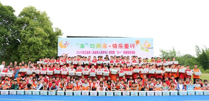 随后江油市救助管理站(未成年人救助保护中心)为现场201名儿童送上节日祝福和礼物,包括防疫物资、学习用品和生活用品。