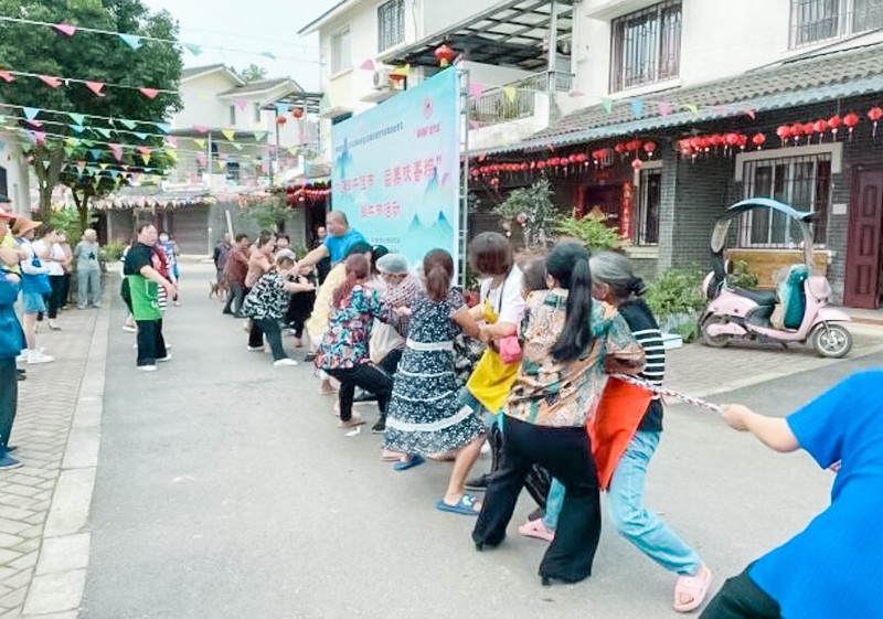 在粽叶飘香下,社区居民们又开始运动起来,随着裁判一声令下,只见两支队伍的队员抓紧绳子,一字排开,开始较量,经过几分钟后,一支队伍被拉了过去。接着是东南西北拉力绳比赛,大家你拉我,我拉你,都在奋力的往象征着端午安康的香包奔去,整个比赛都在激烈、热闹的气氛中进行。