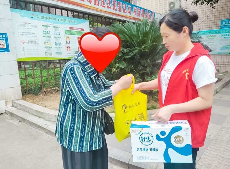 到了经典诵读环节,心公益社工用击鼓传球抽签的方式,让现场的居家康复家人及家属都能参与进来。还邀请了陈瑞老师、护士长周小莉和大家一起诵读经典,纪念爱国诗人屈原。最后,社工给大家发放了多种口味的端午香粽和咸蛋并合影留念。同日心公益1名党员社工和康复中心护士长周小莉,带上提前准备好的端午佳品,到部分家庭困难的居家康复家人的家里为他们送上端午的问候。