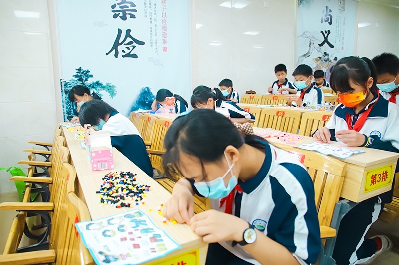 孩子们充分发挥他们的想象力和创造力,一个个精致的积木造型纷纷出炉。
