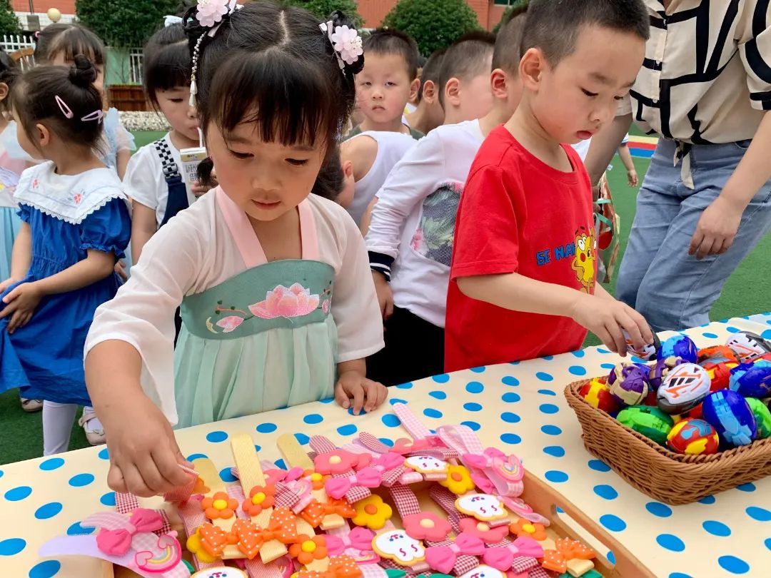 一批批小顾客穿梭于各个摊位前,挑选着自己喜欢的物品,兴奋、满足和快乐洋溢在空气里...