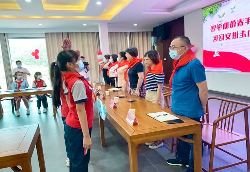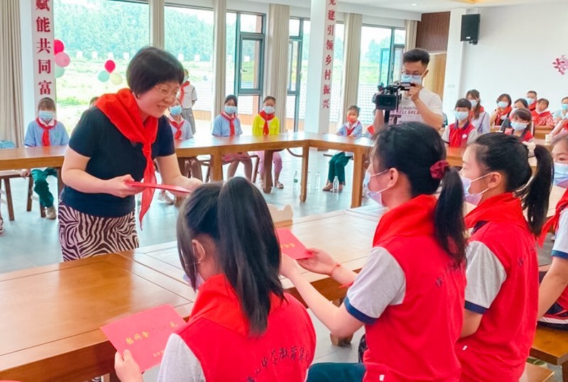 活动的第一项流程是2022年春蕾助学暨“六一”关爱留守女童活动:首先由学生代表为参会领导献红领巾,两名学生代表发言表达了自己内心的感动与感激之情。市妇联副主席张黎表示:市妇联高度重视、关心关注儿童健康成长,希望孩子们要勤奋学习,全面发展,茁壮成长,充分展示出新时代少年儿童奋发向上的精神风貌,并为孩子们送上了节日祝福。随后参会领导为25名留守贫困女童送上了助学金和慰问物资,将关爱传递到她们手中。