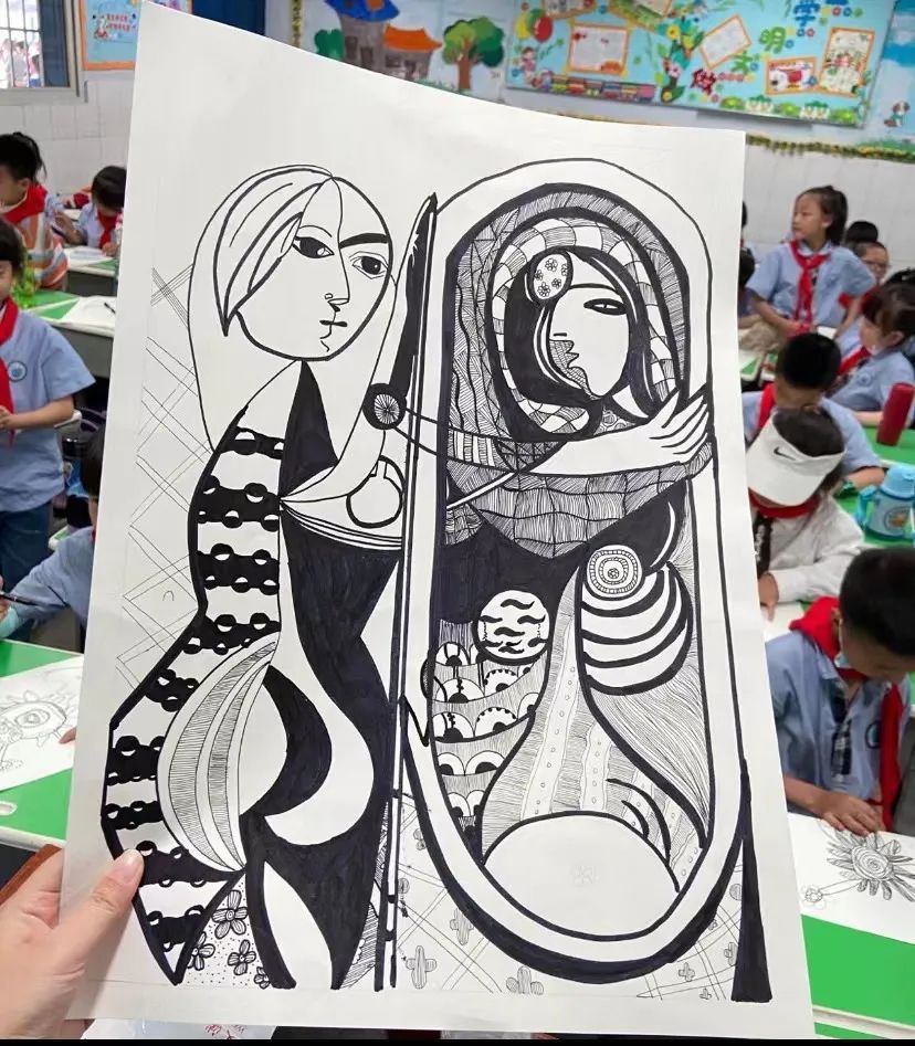 线描画是用点、线、面结合绘画的一种表现形式,是一种以线为最根本的表现手法的幼儿绘画。本次运用线描的方式表现出了大师的画、线描静物、线描风景等。不仅塑造形象,传达感情,而且还可以培养孩子们的观察力、表现力、创造力和想象力。