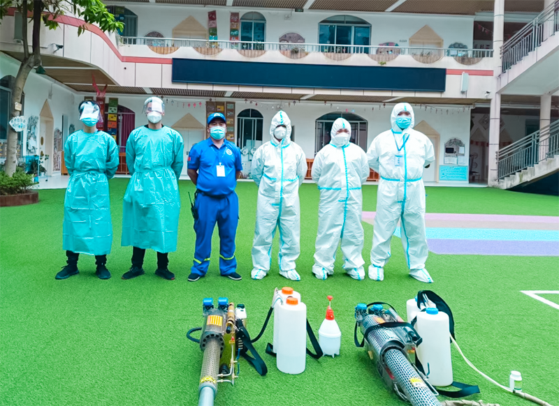 复课在即,为营造健康、安全、干净、舒适的环境,该园邀请蓝天救援队对园所进行全方位、无死角的全面消杀,为孩子的健康成长提供有力保障。