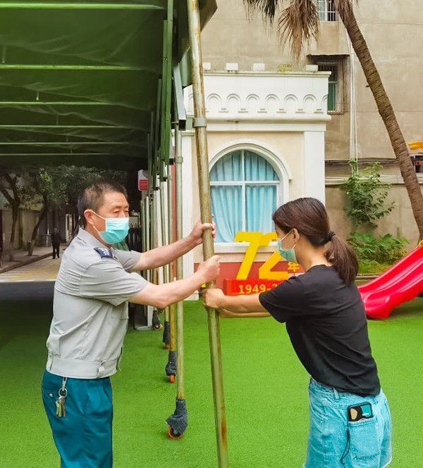 为进一步提高幼儿园应对新冠肺炎疫情的应急指挥、组织协调和处置能力,做实做细复课前的准备工作。6月7日,该园开展了新型冠状病毒感染肺炎疫情防控多场景应急演练活动。演练前,该园组织教职工召开了疫情防控演练部署会,详细部署,明确职责,责任到岗,任务到人,同时邀请了卫生健康副校长讲解了卫生消毒知识,并全程观摩指导疫情防控演练。本次演练内容主要模拟师幼入园晨检、发现密接及核酸阳性人员的应急处置措施和流程等场景,检验全体教职员工疫情防控协同处置能力,在模拟实战中拧紧全园“安全弦”。通过培训和演练,提高了该园教职工疫情防控安全防范意识,提高了教职工的应急处理能力,促进了幼儿园防疫工作规范化,为恢复线下教学做好充分准备。