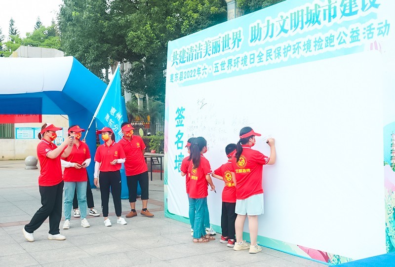 即日起启动了生态环境知识线上答题,进一步扩大了生态环境保护宣传的覆盖面及影响力。环保志愿者以及现场群众在签名墙留下名字,表示对惠东生态文明建设的支持。