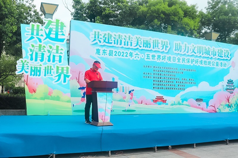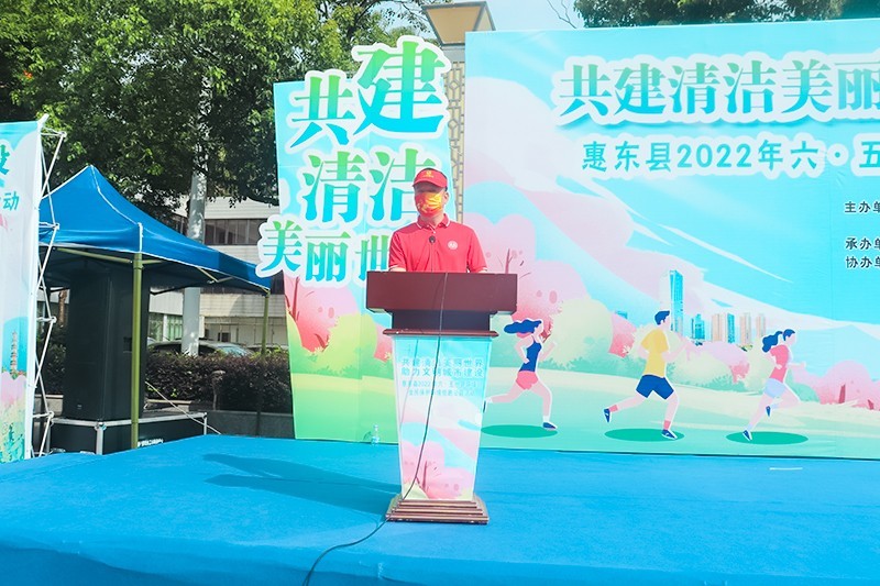 县委常委、宣传部长黄利勇就“共建清洁美丽世界 助力文明城市建设”作了主题讲话,他强调,社会各界和广大群众要牢固树立“绿水青山就是金山银山”理念,以实际行动“共建清洁美丽世界 助力文明城市建设”。最后,他宣布惠东县2022年六·五世界环境日全民保护环境捡跑公益活动启动,并鸣笛发令开始行动。