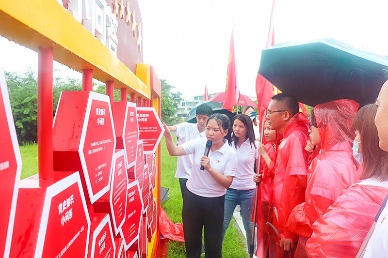 心中有信仰,脚下有力量,即使下雨也丝毫不减各位党员的热情。党员们佩戴党徽,高举旗帜,以坚定的步伐行走在栈道上,途中踊跃参加党史知识问答,并以拾取沿途垃圾的形式倡导践行了绿水青山就是金山银山的理念,充分展现了两新组织党员昂扬向上、奋发有为的精神风貌。