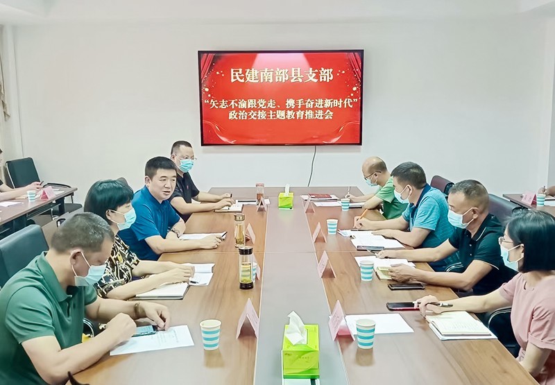 6月10日,民建南充市南部县支部召开二届十次支委(扩大)会议,专题学习中共四川省第十二次代表大会精神,传达贯彻民建四川省第十次代表大会精神,并就深入开展“矢志不渝跟党走、携手奋进新时代”政治交接主题教育作出安排。