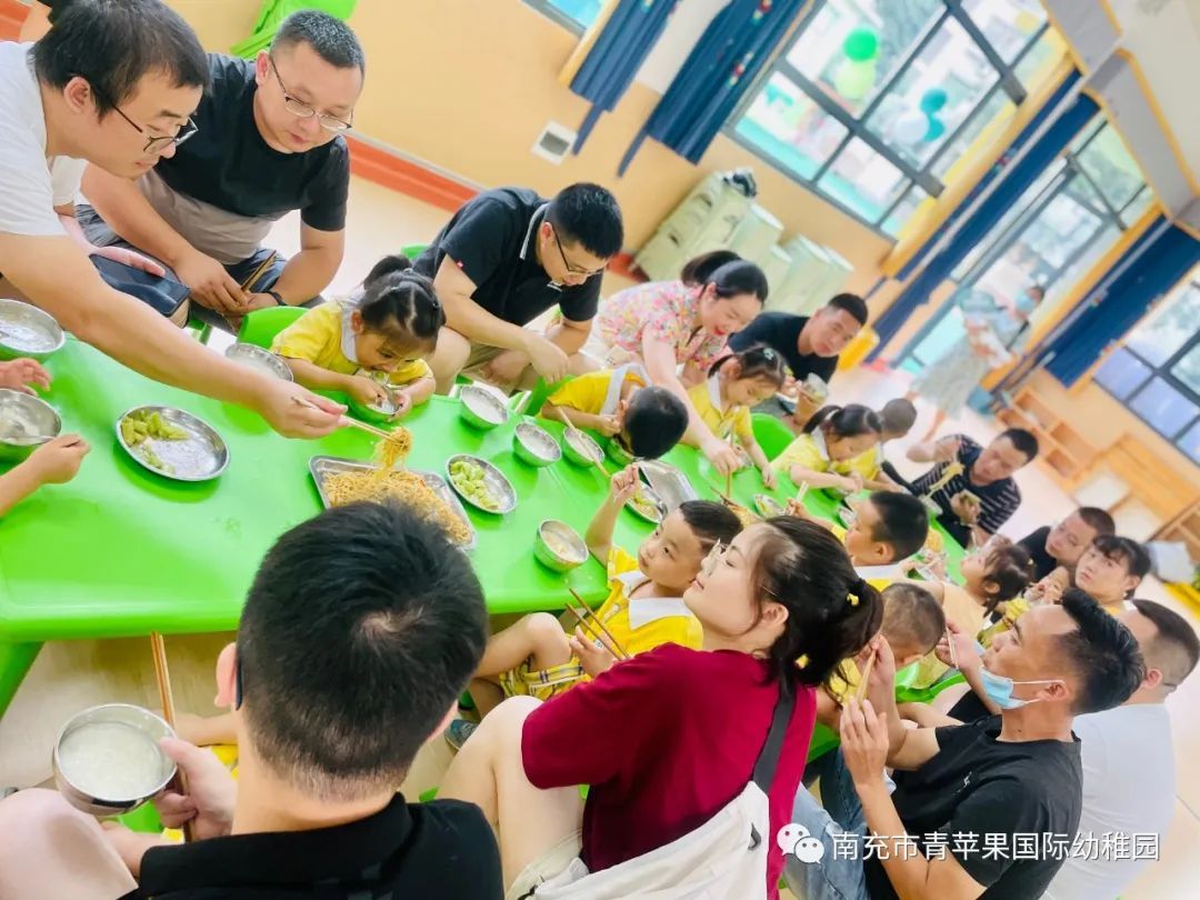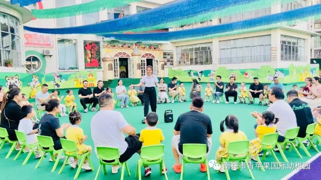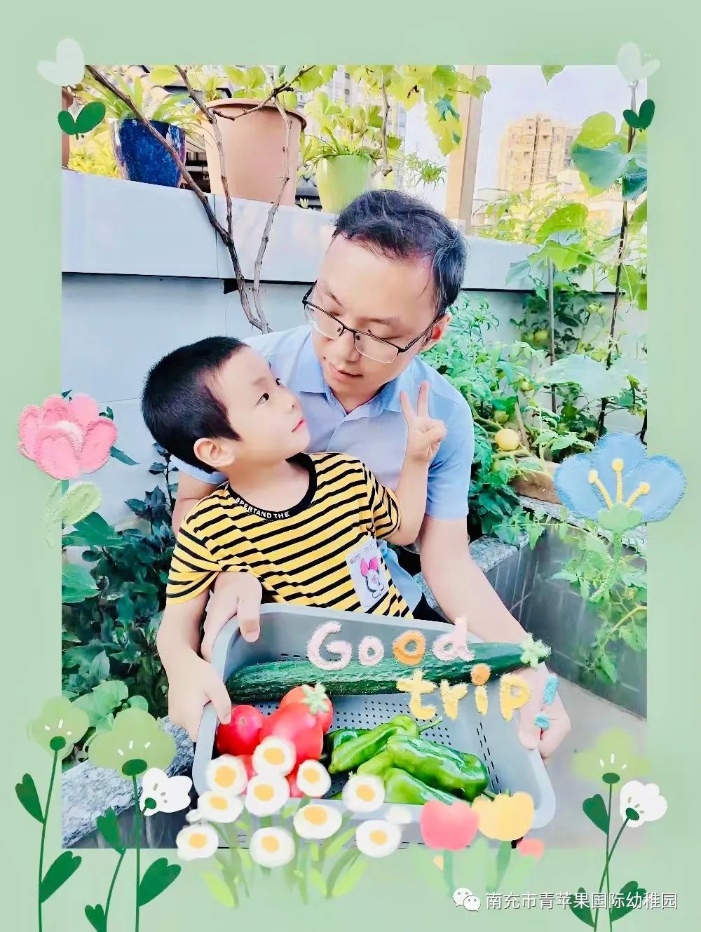 南充市青苹果国际幼稚园里,父亲节收到最酷的礼物就是宝贝们和爸爸一起DIY的T恤衫。