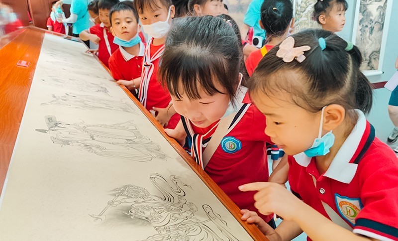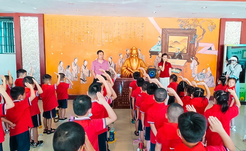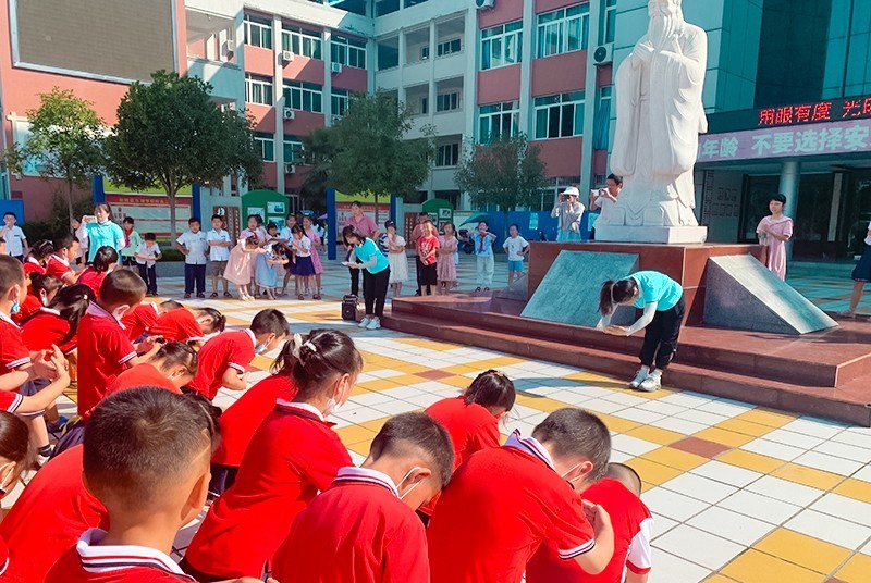 孩子们努力寻找小学与幼儿园的不同之处,认真观察着校园的每个角落。在赵兴华校长的带领下,孩子们了解了东湖学校的历史和校园文化,参拜了孔子雕像。
