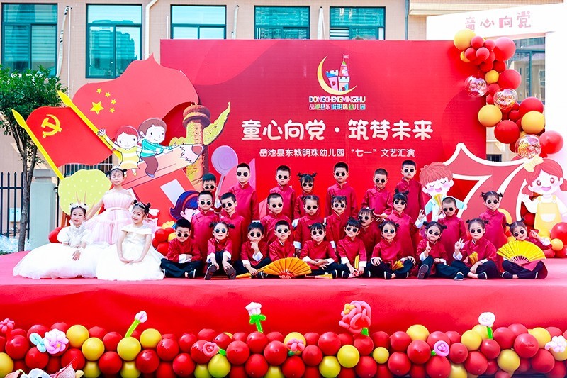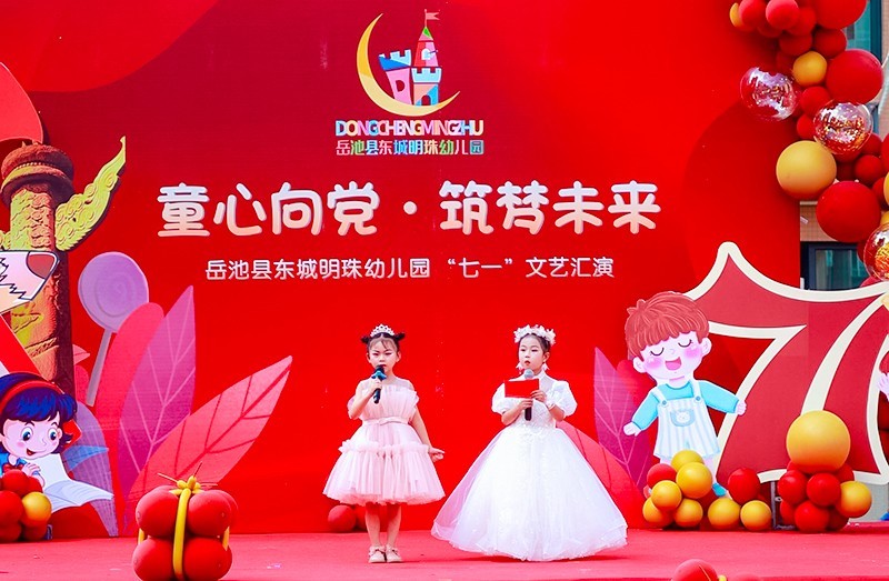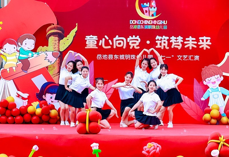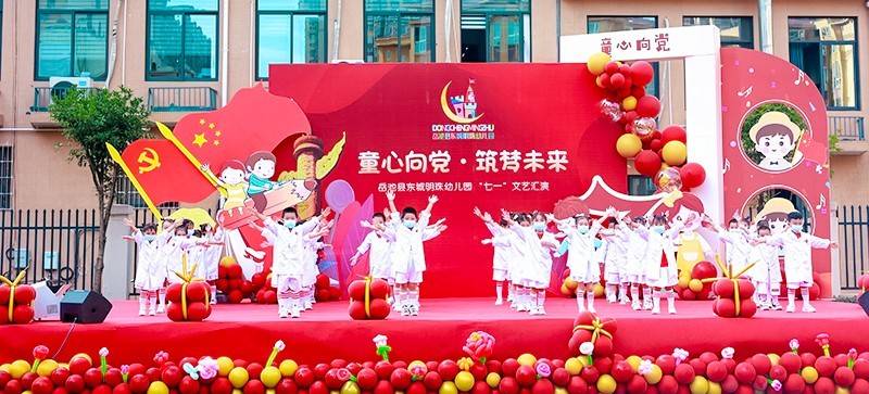 为隆重庆祝建党101周年,深情回顾党走过的光辉历程,歌颂建党以来的丰功伟绩和辉煌成就,激发全园教职工爱党、爱祖国的情感,以更加饱满的精神投入到幼儿园的保教工作当中,6月28日上午,四川省广安市岳池县东城明珠幼儿园举办“童心向党·筑梦未来”七一文艺汇演活动。