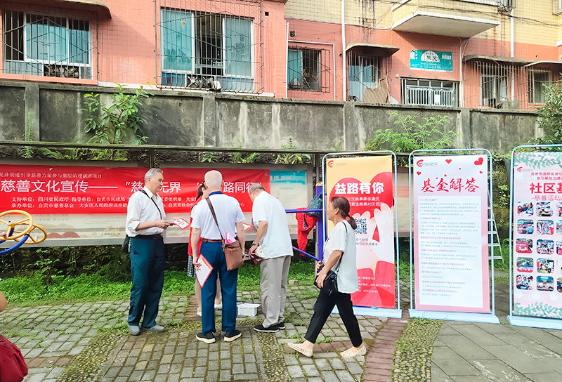 为宣传慈善文化,提升龙井街社区居民的慈善文化意识,营造慈善社区氛围,让社区居民认识、走近、了解慈善文化,同时发掘社区居民骨干,号召更多力量参与慈善社区治理。6月29日,四川省自贡市龙井街道引导慈善力量参与基层治理试点项目在龙井街道大楻桶社区开展“慈善无界,‘益’路同行”慈善文化宣传活动,宣传社区基金100余人次。