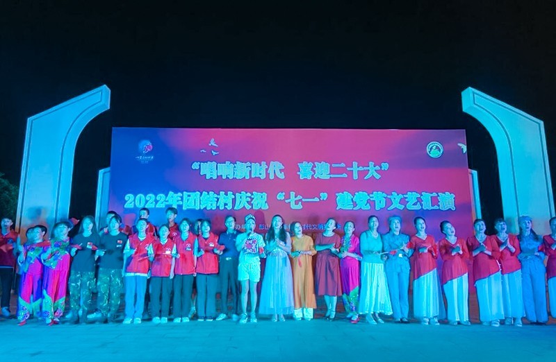 7月1日晚,“唱响新时代 喜迎二十大”——团结村庆祝“七一”建党节文艺汇演在橘花广场精彩上演,晚会以优美的歌舞、嘹亮的红歌向党深情告白,抒发对党的热爱,展现了在大力推进新时代文明实践工作后,干群勠力同心谋发展的精神和成效。