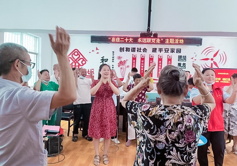 活动中,心公益社工介绍了本次活动的意义和议程,运用“拍拍操”中拉近彼此的距离,消除了党员同志、居家康复家人、居家康复家人的家属,彼此的陌生感调节了现场气氛。
