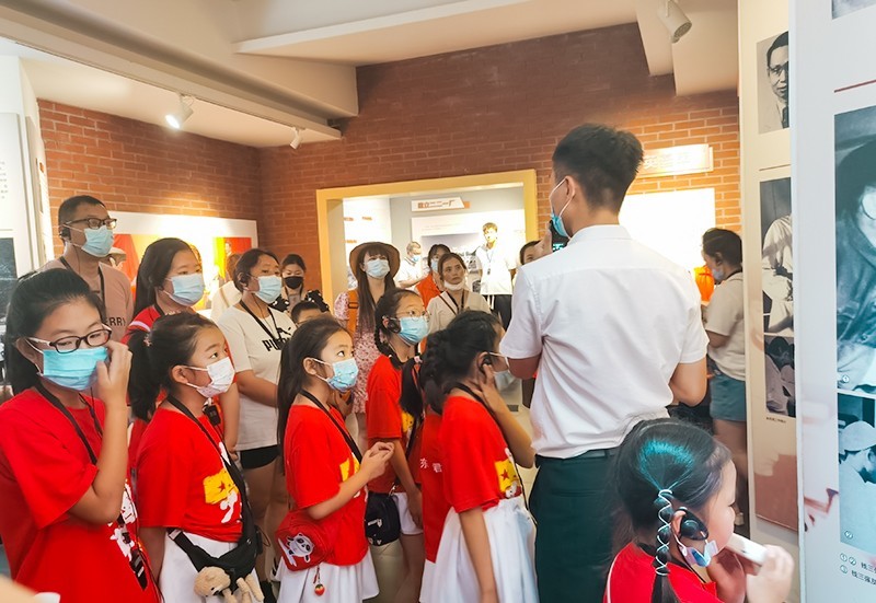 一张张照片,一件件实物,一部部影片吸引着每个小朋友的目光,追寻着历史足迹。