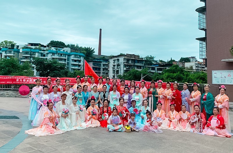 为进一步营造浓厚的社区氛围,促进居民对汉文化了解,感受汉服的魅力,引导居民建立中国精神,中国气派的审美观、文化观,坚定文化自信,感受中国优秀传统服饰文化。7月22日,自贡市灵志社会工作服务中心承办的2021年省级社会工作服务试点示范项目——四川省自贡市贡井区筱溪街道金鱼河社区重锦汉服社与新马路社区重锦汉服社联合开展了汉服秀活动。
