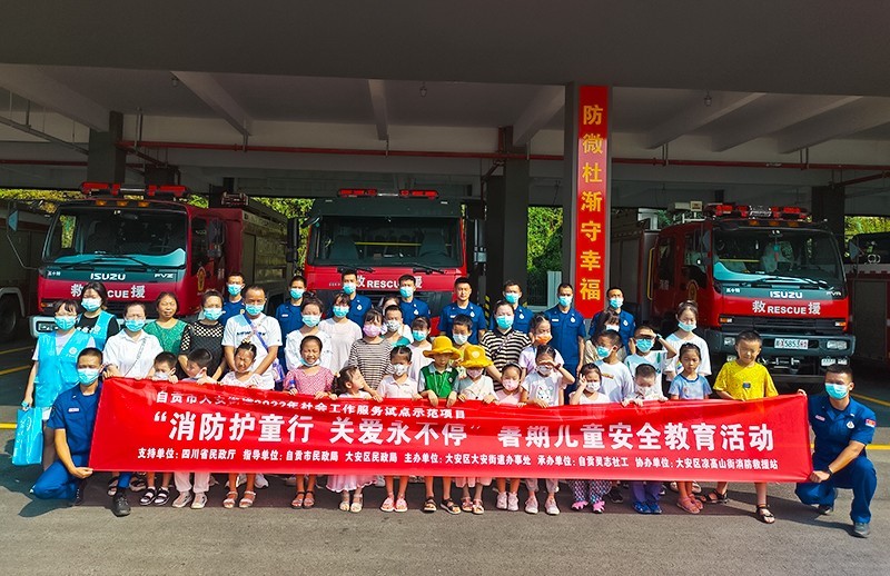 为丰富儿童假期生活,让儿童更好得掌握消防安全知识,掌握更多的自救、逃生、自我保护的具体方法。7月29日上午,由四川省民政厅支持,自贡市民政局、大安区民政局指导,大安区大安街道办事处主办,自贡市灵志社会工作服务中心承办,大安区凉高山街消防救援站协办的自贡市大安区大安街道2022年社会工作服务试点示范项目——“消防护童行·关爱永不停”暑期儿童安全教育活动在凉高山街消防救援站举行。此次活动共有25组家庭参与。