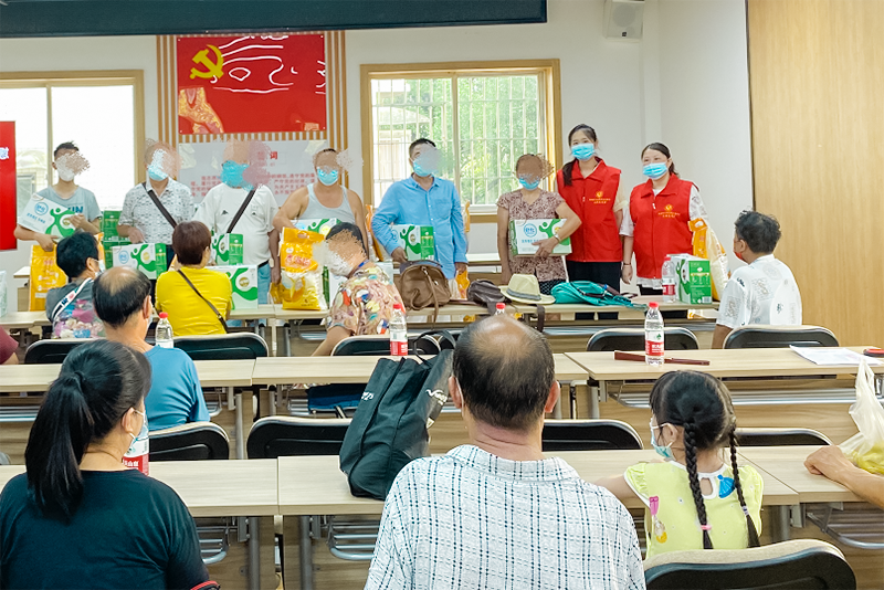 活动由安全知识宣讲和慰问物资发放两部分组成,首先,工作人员为参与人员介绍了养老骗局知识,通过宣讲,提升了困境人员对养老骗局的自我防护意识,之后,社工为各社区代表发放基础慰问物资一箱奶及一袋大米,后续,工作人员还将对各社区其他困境人群入户慰问,为他们发放慰问物资。