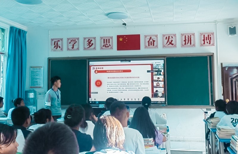 7月14日,西华师范大学历史文化学院“彝乡云”暑期社会实践队继续连线凉山彝族自治州喜德县中学冕山校区,采用“互联网+教育”的模式,通过腾讯会议APP实现云端线上为学生们授课。