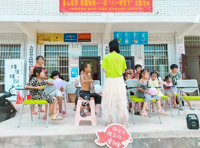 2022年是中国人民解放军建军95周年,为了让少年儿童深情回顾解放军的奋斗历史,继承和发扬解放军的光荣传统和优良作风,培养孩子的责任意识和爱国情怀,在四川省遂宁市大英县民政局的指导下,金元镇人民政府、金元镇社会事务办的支持下,遂宁春晖社会工作发展中心驻金元镇社工站于8月1日在金元镇明月村社工室了开展“童心筑梦,荣耀致敬”庆“八一建军节”主题活动。来自明月村的儿童、老兵等共计30余人参与活动。