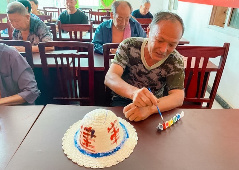 下一个环节是草帽涂鸦,社工让老兵以建军节为主题进行草帽创作,大家都迫不及待的拿起手中的画笔开启“八一”彩绘之旅。充满想象力的天空、飘扬的红旗……参加草帽涂鸦老兵们发挥想象力和创造力,相互协作,用手中的画笔勾勒自己心中最美的事物,自由上色,最终创作出自己满意的作品。