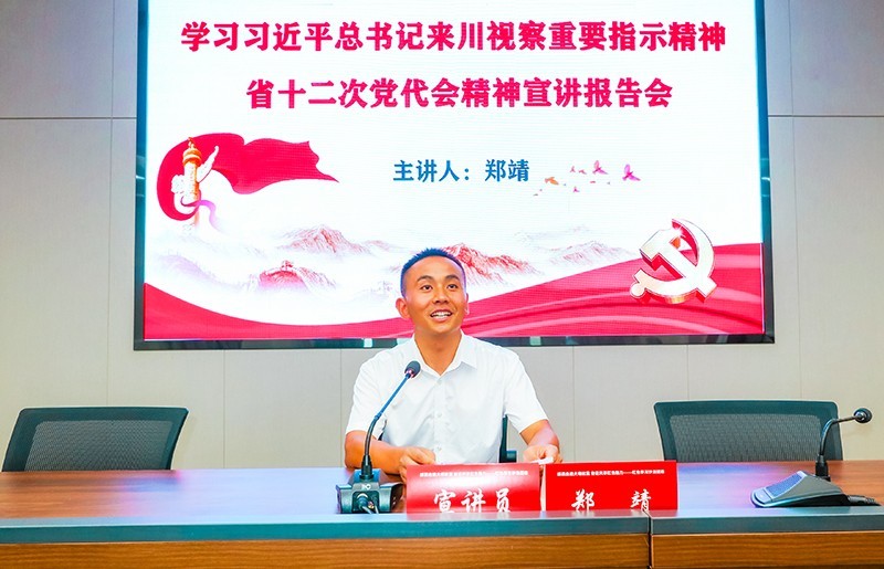 会议组织学习相关内容。南充市遂宁商会秘书长、顺庆区新时代文明实践青年宣讲分团宣讲员郑靖进行相关精神的现场宣讲。