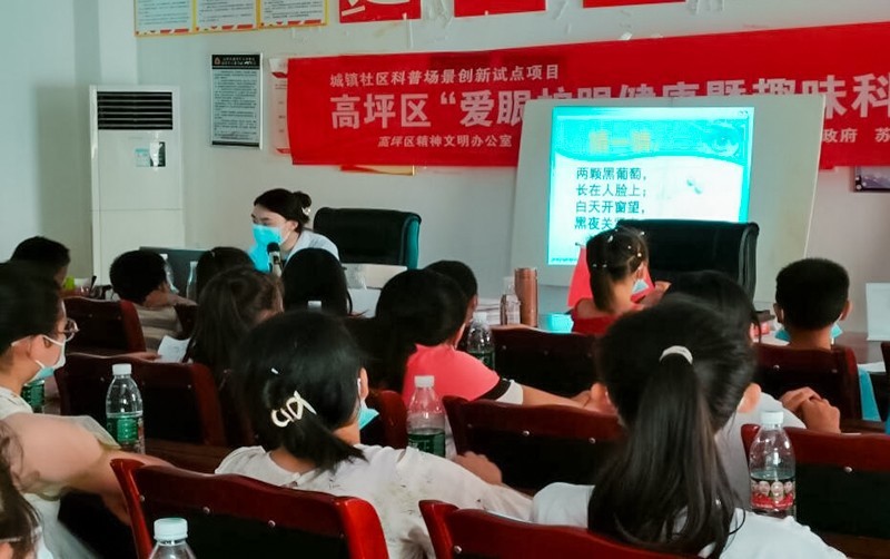 眼睛是心灵之窗,在日常生活中,我们用它看到生活之美,为增强儿童爱眼护眼的意识,普及科学用眼知识,呵护儿童视力健康,同时带领儿童体验科学实验,感受科学的奥妙与魅力。7月26日,四川省南充市高坪区科协联合长乐镇人民政府、苏家桥村村委会、川北医学院第二附属医院、高坪区科普志愿者协会在长乐镇苏家桥村新时代文明实践所开展城镇社区科普场景创新试点项目——高坪区“爱眼护眼健康暨趣味科学小实验”科普知识主题活动。