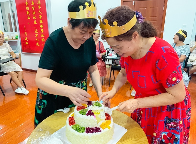 “祝你生日快乐、祝你幸福祝你平安……”在生日歌的环绕下,“心连心”关怀社的志愿者们和寿星们一起切生日蛋糕、吹蜡烛,齐唱生日歌,为他们送上最诚挚的生日祝福,在一片欢声笑语中,老人们度过了一个愉快而有意义的生日会。