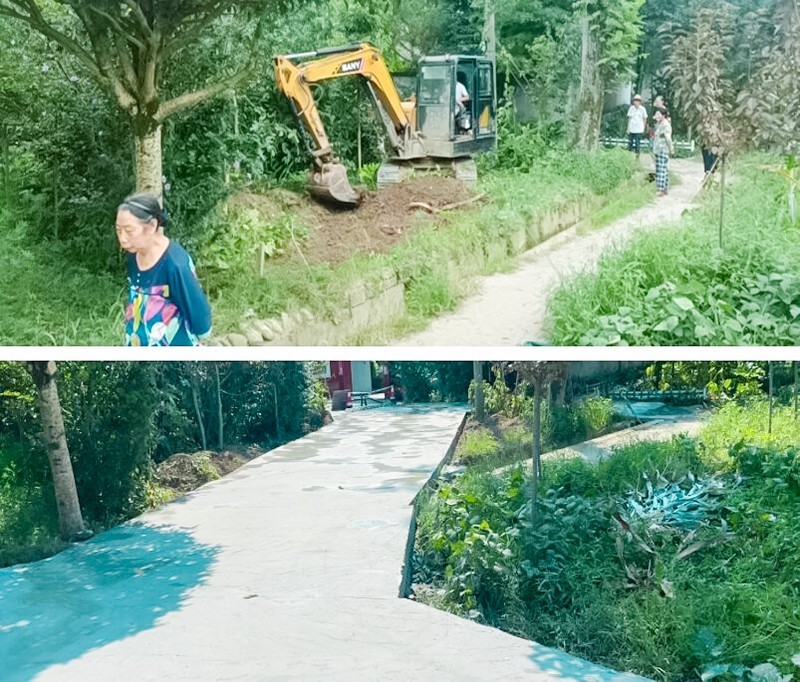 此次“公共区域打造”活动,是友爱社工通过前期走访、坝坝会的开展,了解到富丽村村民希望能够修整院落道路,而富丽村党委接到村民反映后,社区党委高度重视,在了解路面情况后,即刻联系相关部门做好对接工作,紧接着由村民组织的施工队开始紧锣密鼓地对杂草丛生的路面进行扩建工作。同时,社区居民一起将路上的树木进行处理,并租用挖挖机对地面的杂草进行修整,对坑洼地方进行了硬化处理,并将土和沙子填补到路面,进行夯实加固。经过6天的辛勤努力原本杂草丛生的泥泞小路,变成了小车可以随意开过的大路。过往的社区村民看到平坦的路面,都伸出了大拇指,夸赞社区又为居民办了一件实事。
