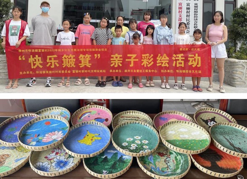 为促进社区儿童与父母之间的沟通,增强社区村民之间的凝聚力,并让社区儿童了解竹编传统文化。8月23日,由四川省崇州市怀远镇富丽村村民委员会主办、崇州市友爱社工服务中心承办的怀远镇富丽村2022年城乡社区发展治理专项保障资金项目——“快乐簸箕”亲子彩绘活动在富丽村村委会顺利开展。
