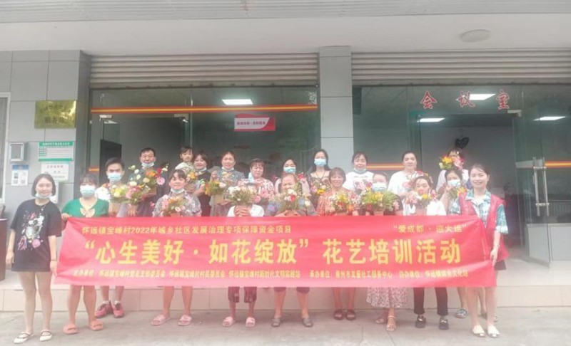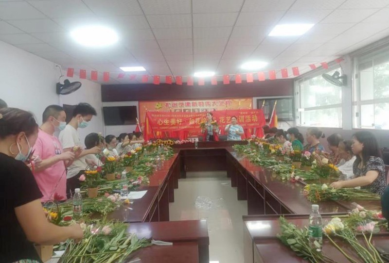 8月24日上午,由四川省崇州市怀远镇宝峰村党总支部委员会、宝峰村村民委员会主办、崇州市友爱社工服务中心承办的“党群共聚力·共创新风貌”文体活动项目——“心生美好·如花绽放”花艺培训活动在宝峰村村委会内顺利开展。